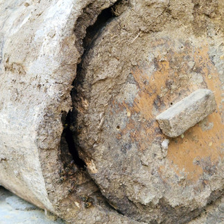 Les ruches mixtes ; la seule et unique ruche que j’ai rencontrée est une ruche faite d’argile. Le corps de la ruche a été moulé pour correspondre aux dimensions d’une ruche standard. A l’intérieur de la ruche a été moulé un espace pour que l’on puisse y poser tous les cadres. Cette Ruche est soit posée sur des pierres soit sur un socle en argile. Le toit de la ruche est lui par contre en bois, comme sur les ruches standards. Il en va de même pour la hausse.