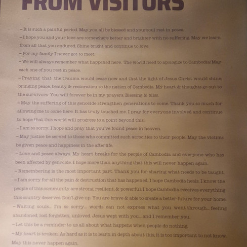 En quatre ans on estime le nombre là quatre millions de personnes qui ont été tués arbitrairement sous seul motif d’être un potentiel « ennemi » de la république soit en proportion presque 30 pourcent de la population totale. Les ennemis ce sont toutes les personnes qui étaient capables de réfléchir, de s’exprimer, qui avaient été en lien avec les américains, des vietnamiens, qui avaient des idées différentes et bien sur d’autres croyances religieuses. Porter des lunettes, arriver en retard, avoir une connaissance de langue étrangère, être fonctionnaire, être artiste, être différent, tout cela suffisait pour se faire exécuter.